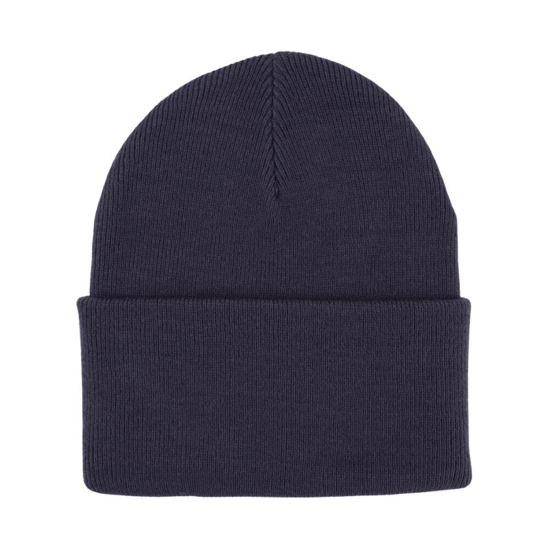 - Konstrukcja beanie z podwiniętym brzegiem.