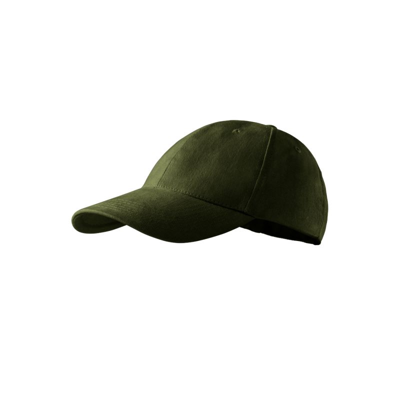 Czesany twill, 100 % bawełna krój szesciopanelowy, połaczone 2 panele przednie, wyszywany, lekko zakrzywiony daszek, haftowane otwory wentylacyjne, opaska pochłaniajaca pot, rozmiar regulowany za pomoca rzepu