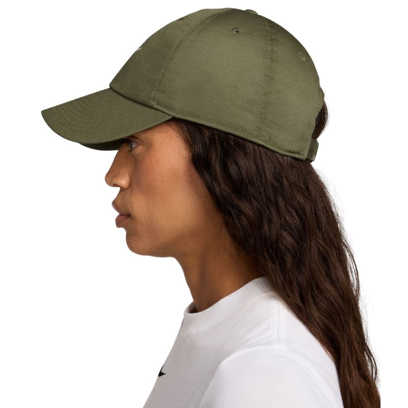 Czapka z daszkiem Nike Club oliwkowa FB5368 222 Czapka z daszkiem Nike sprawdzi się na co dzień. Wygięty daszek. Bawełniana tkanina. Obszyte przelotki. Regulacja z metalową sprzączką. Wyszywanym logo. Czapka z efektem sprania. Dane techniczne: · Materiał główny: 100% bawełna· Rozmiar / Obwód głowy: S/M (52-57 cm), M/L (55-60 cm), L/XL (58-63 cm)