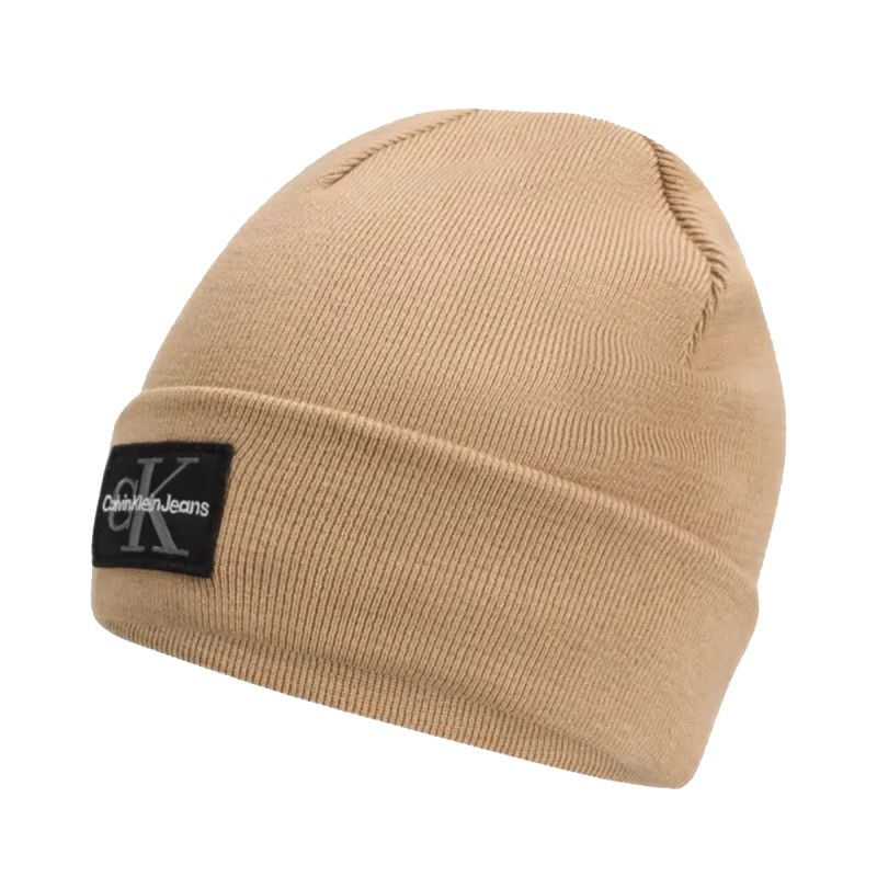 Czapka zimowa Calvin Klein CK Logo Beanie Beżowa - LZ04D8080G-PF2