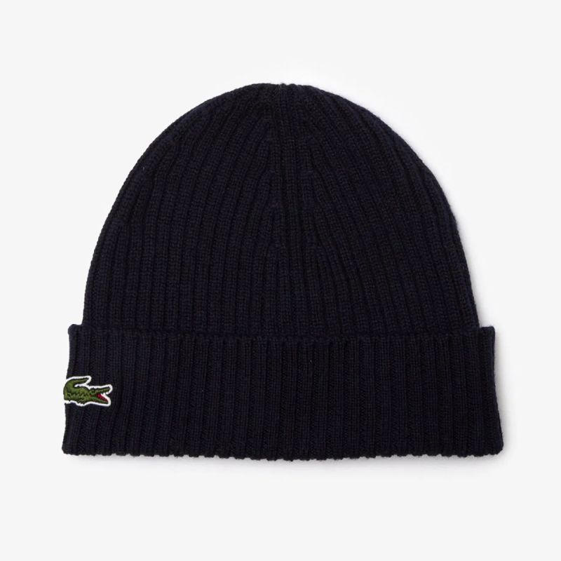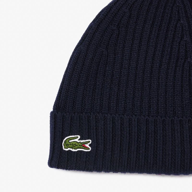 Czapka zimowa wełniana Lacoste Ribbed Wool Beanie Granatowa - RB0001-166