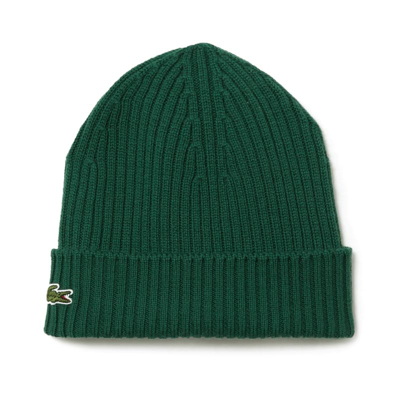 Czapka zimowa wełniana Lacoste Ribbed Wool Beanie Zielona - RB0001-132