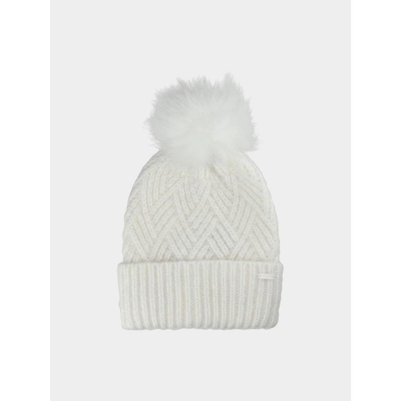 Czapka zimowa z pomponem dziewczęca idealnie sprawdzi się nie tylko jako zimowe akcesorium, ale także jako element sportowych stylizacji podczas aktywności na świeżym powietrzu w chłodne dni. Posiada klasyczny fason typu beanie.Czapka na zimę jest wykonana z materiału syntetycznego, który zapewnia trwałość i jest łatwy w pielęgnacji.Czapka dla dziewczynki nie jest ocieplana. Na czubku znajduje się pompon ze sztucznego futerka. Ma podwinięty mankiet.