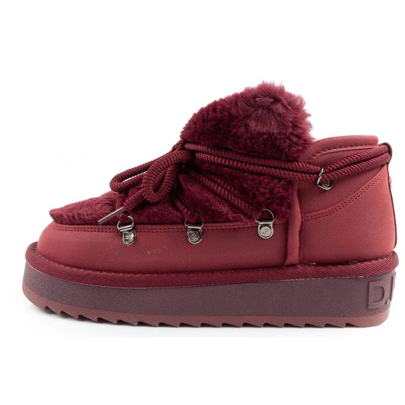 D.Franklin buty śniegowce damskie zimowe modne futerko ocieplane bordowe