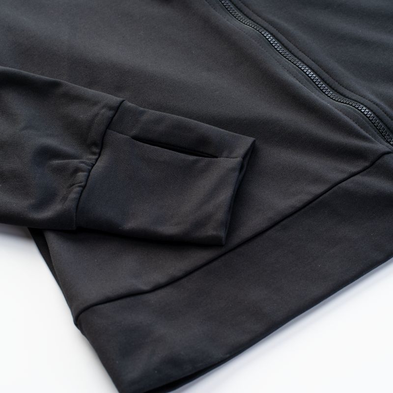 BLUZA TRENINGOWA ROZMIAR: S-XL SKŁAD MATERIAŁOWY: 86% POLIESTER, 14% ELASTAN SPECYFIKACJA: - OTWORY NA KCIUKI - MATERIAŁ POCHODZĄCY Z RECYKLINGU - ZAMEK YKK