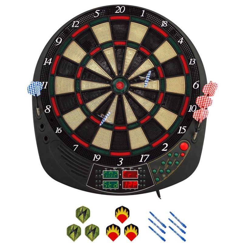 - Zestaw zawiera: zasilacz, tarcza, rzutki – 12 szt., wymienne końcówki