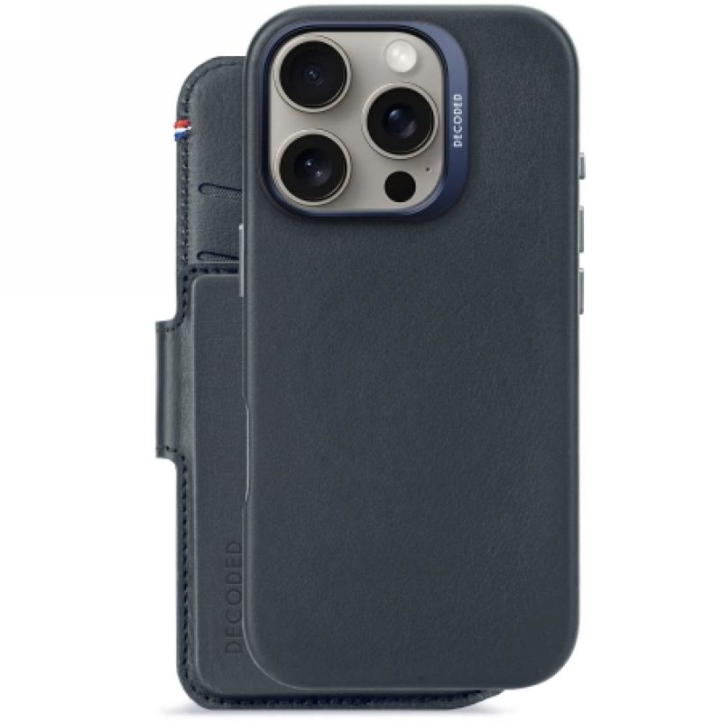 Decoded Leather Detachable Wallet - skórzana obudowa ochronna do iPhone 16 Pro kompatybilna z MagSafe (navy)