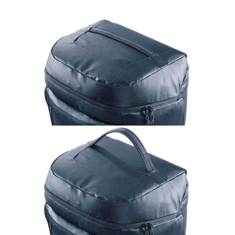 Z boku znajduje się uchwyt teleskopowy, który można regulować dopasowując do wzrostu użytkownika, co ułatwia prowadzenie torby na cichych, wymiennych kółkach. Duży otwór w kształcie litery U z zamkiem błyskawicznym umożliwia szybki dostęp do obszernej komory głównej, a wewnętrzne paski kompresyjne stabilizują zawartość podczas transportu.