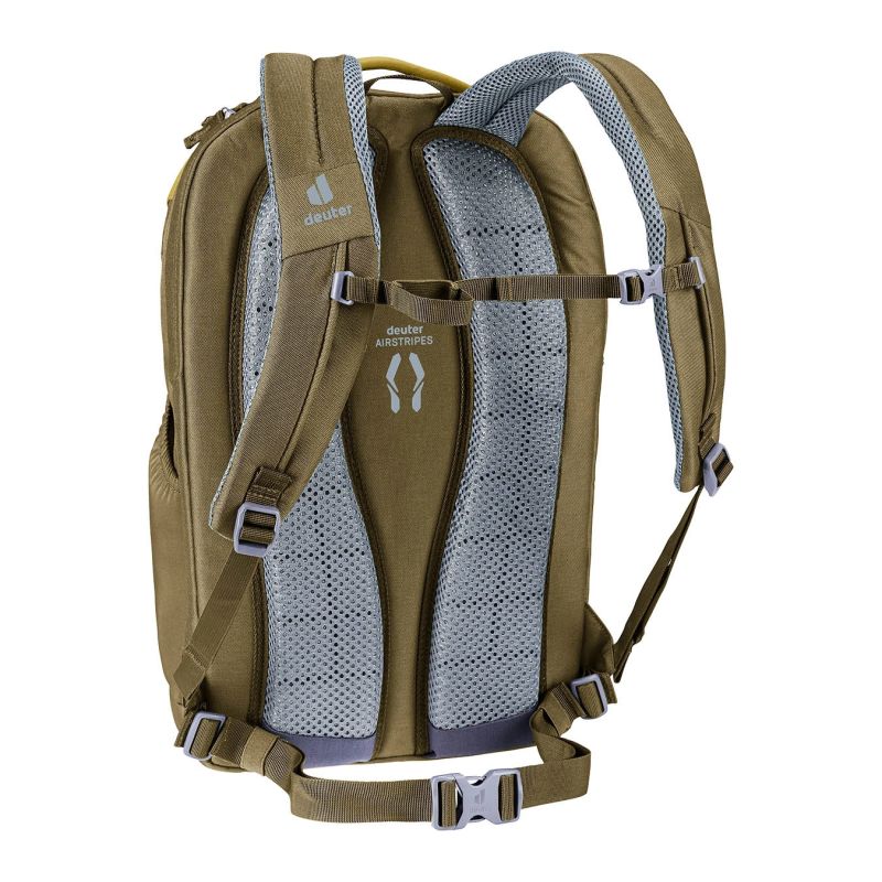 System nośny Airstripes z wentylowanymi panelami i ergonomicznie ukształtowanymi szelkami zapewnia dobre dopasowanie oraz komfort podczas dłuższego noszenia, nawet przy obciążeniu do około 6 kg. Plecak ma główną komorę z zamkiem błyskawicznym z dużym otwarciem, ułatwiającym dostęp do wnętrza. W środku znajduje się wyściełana kieszeń na laptopa do 15,6″ oraz przestrzeń na dokumenty i inne akcesoria.