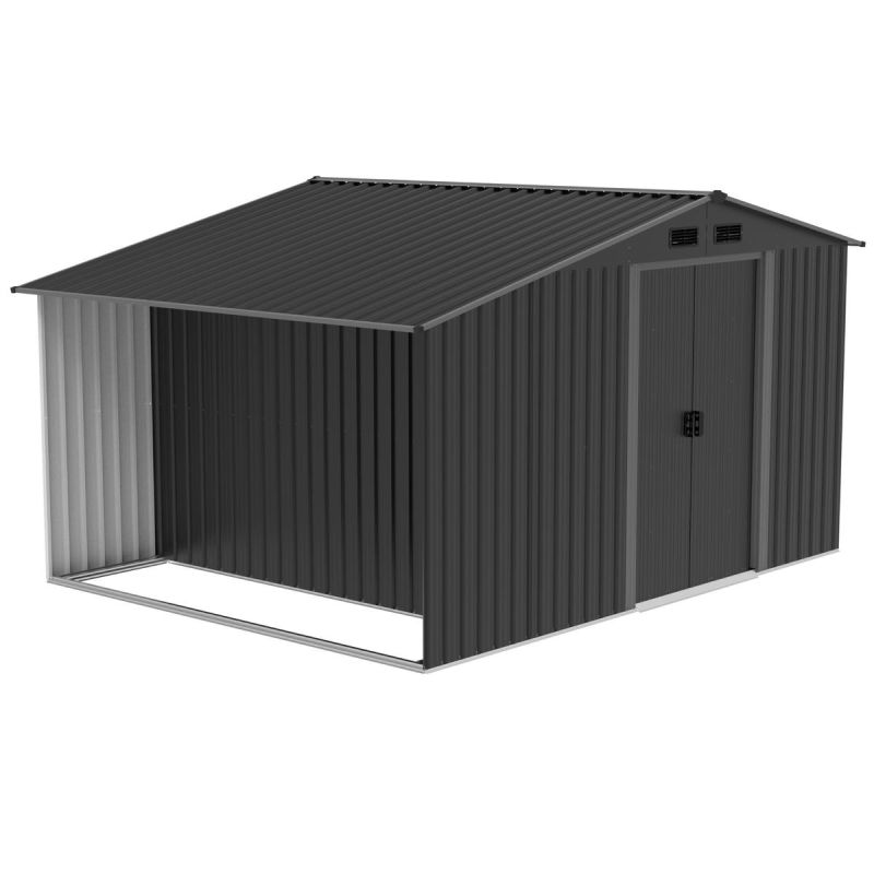 DOMEK OGRODOWY NARZĘDZIOWY METALOWY Z DREWUTNIĄ 308X245X202CM