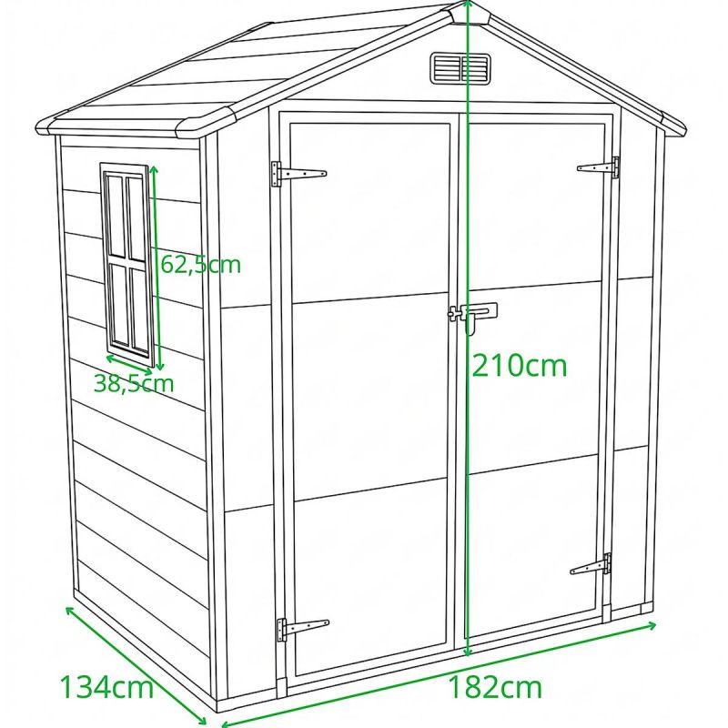 UWAGA! Przy zakupie domku ogrodowego/narzędziowego należy pamiętać, że podłoga nie jest częścią zestawu i nie znajduje się na wyposażeniu. Aby zapewnić odpowiednią stabilność oraz ochronę przechowywanych przedmiotów, zalecamy przygotowanie odpowiedniej powierzchni lub zastosowanie dodatkowej podłogi (np. drewnianej, z tworzywa sztucznego lub betonowej).