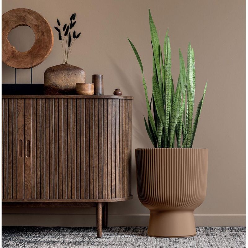 Doniczka z serii Milly z gustownym wzorem złożonym z pionowych pasów przyciąga uwagę i nadaje jej wyjątkowego charakteru. Jej klasyczna forma oraz stonowane kolory sprawiają, że idealnie wpasuje się w wiele współczesnych aranżacji, wprowadzając designerski akcent do wnętrz lub otwartych przestrzeni ogrodu lub tarasu.