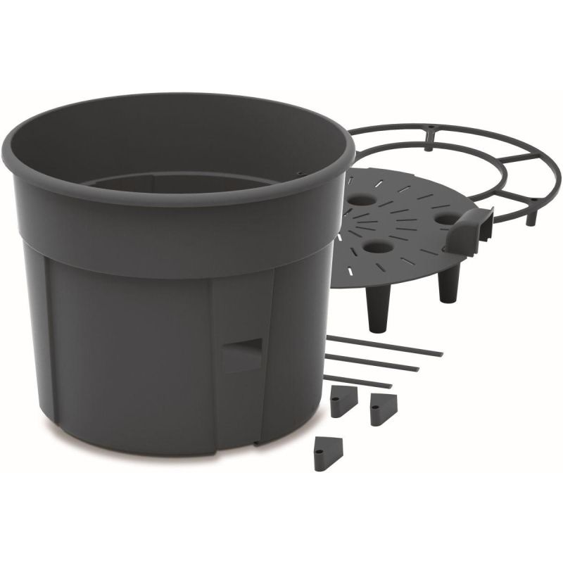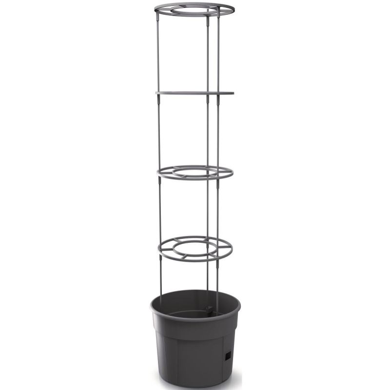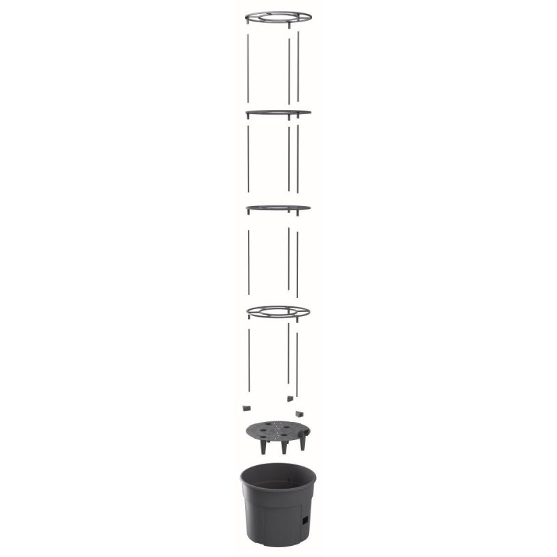 - Zestaw zawiera 21 elementów: 1 doniczkę, 1 tackę nawadniającą, 3 wsporniki do słupków, 4 pierścienie, 12 słupków