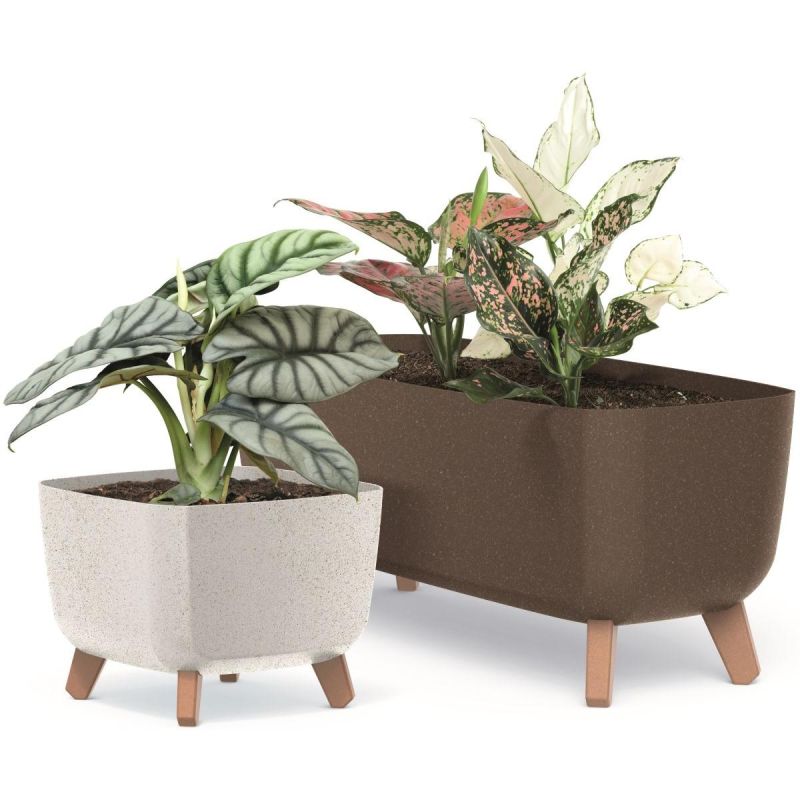 Doniczka Gracia Square ma kształt zaokrąglonego kwadratu oraz zgrabną formę, którą podkreślają nóżki o strukturze przypominającej drewno. Jej powierzchnia przypominający beton sprawi, że idealnie wpasuje się do współczesnych aranżacji lub do otwartych przestrzeni, takich jak ogród czy taras.