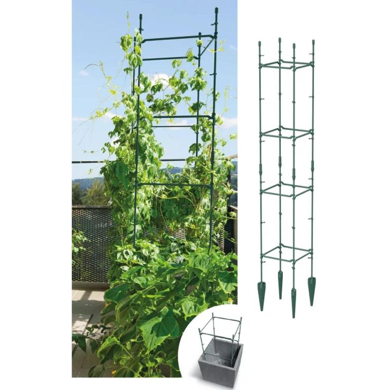 Donice są w pełni kompatybilne z podporami FLOO SUPPORTS marki Prosperplast, co umożliwia stabilny wzrost roślin pnących. Dzięki temu pomidory, fasola czy pnące kwiaty mają odpowiednie podparcie, co zapobiega ich łamaniu się i poprawia cyrkulację powietrza wokół roślin. To praktyczne rozwiązanie sprawia, że donice świetnie sprawdzą się zarówno w domowej uprawie warzyw, jak i w estetycznych kompozycjach roślinnych na tarasach, balkonach i w ogrodach.
