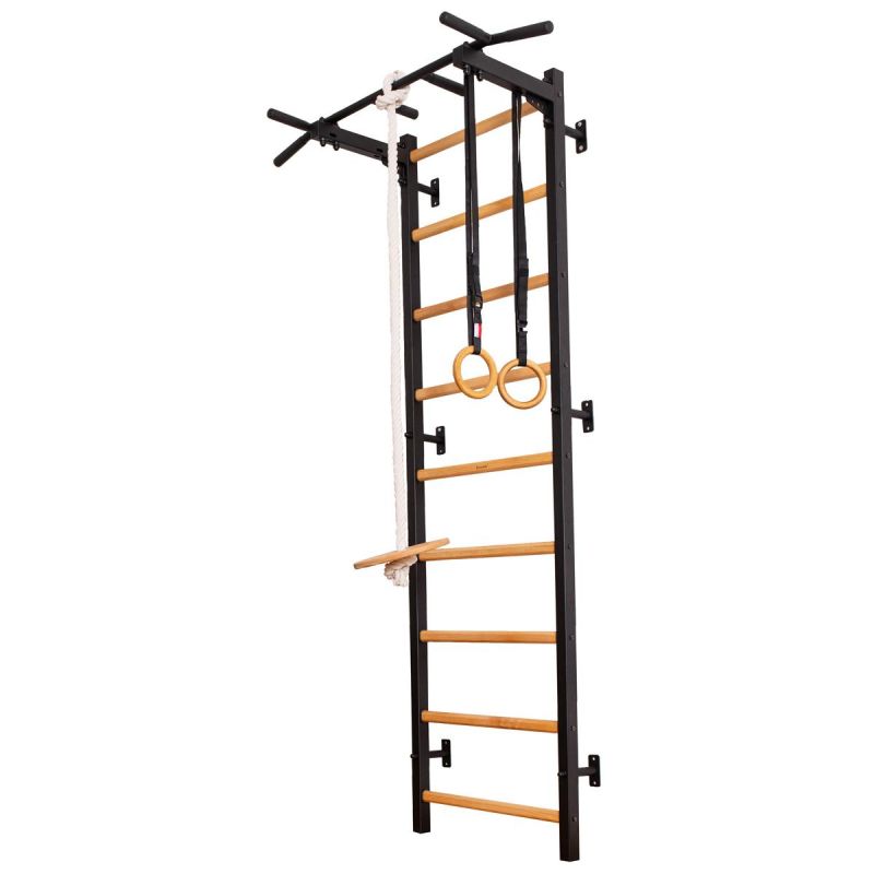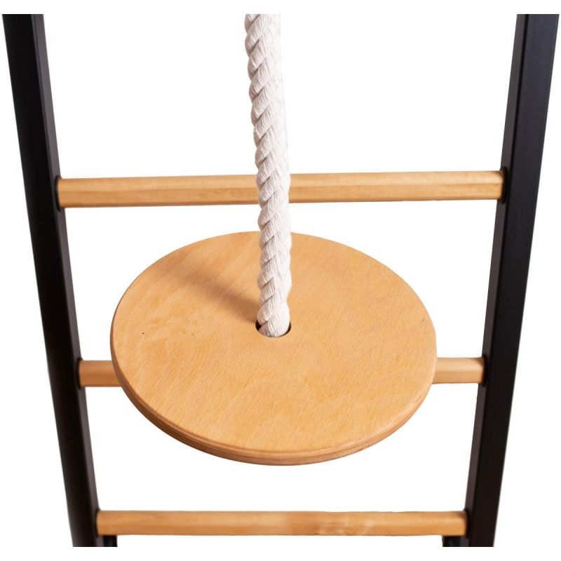 Pionowe profile (50 mm x 40 mm) drabinki są wykonane z wysokiej jakości, malowanego proszkowo metalu. Szczebelki zrobione są z bukowego drewna o owalnym kształcie, ich powierzchnia została ręcznie pomalowana olejem. Na górnej części drabinki znajduje się zamontowany na stałe metalowy drążek do podciągania. Drążek do podciągania posiada 6 rączek, które pozwalają wykonywać ćwiczenia ramion i pleców przy użyciu różnych chwytów. Długość drążka do podciągania to 115 cm.