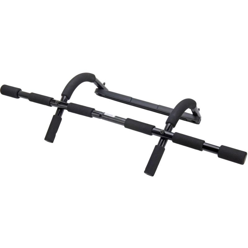 - Przeznaczenie: drążek treningowy można używać nad drzwiami do podciągania lub na podłodze do pompek