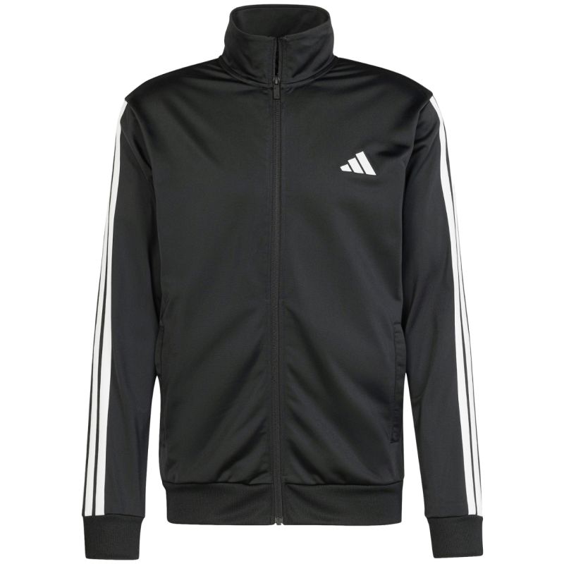 Dres sportowy adidas przeznaczony jest dla mężczyzn. Sprawdzi się podczas treningów piłkarskich lub odpoczynku poza boiskiem. Rozpinana bluza ze stawianym kołnierzem. Jej dolną część i rękawy wyposażono w ściągacze.