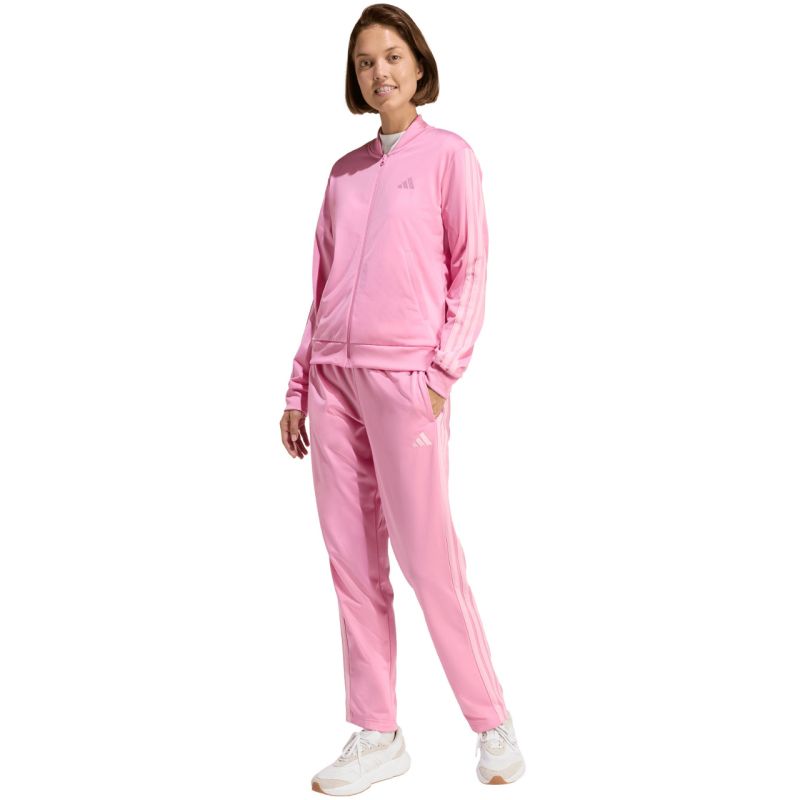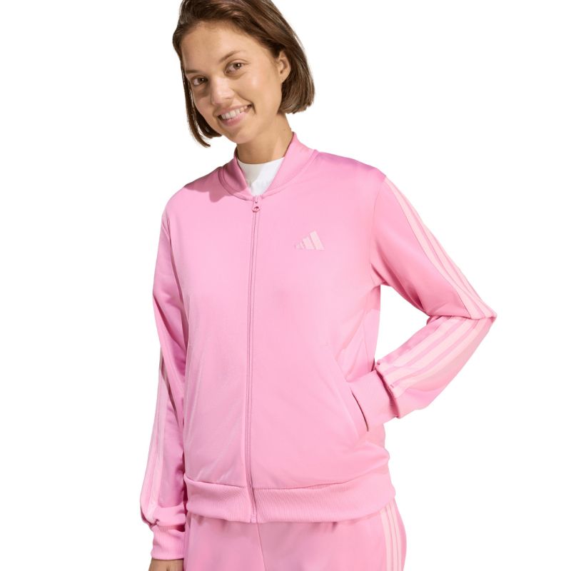 Dres damski adidas Dayready różowy KB8160 Damski dres adidas zadba o najlepszy komfort podczas sportowych aktywności i w chwilach błogiego odpoczynku. Szybkoschnący materiał z włókien powstałych w procesie recyklingu. Dane techniczne:· Materiał: 100% poliester z recyklingu· Standardowy krój ze średnio zabudowaną talią· Suwak na całej długości i stawiany kołnierz· Przednie kieszenie w spodniach i w bluzie· Mankiety i dół ze ściągaczami· Elastyczna talia ze sznurkiem