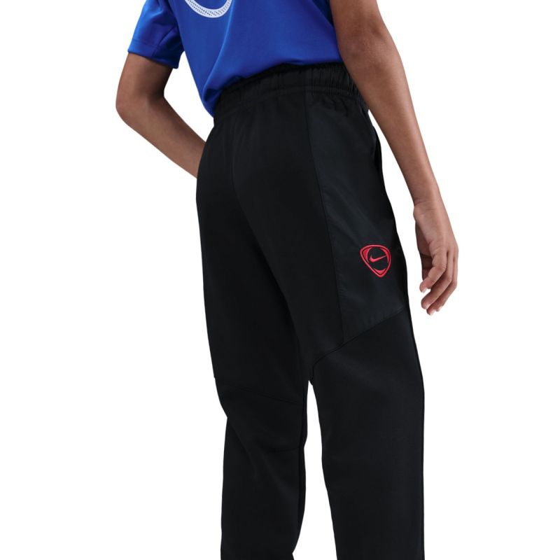Dres dla dzieci Nike PSG czarny HM3070 010 Dres to funkcjonalny dodatek w sportowej garderobie młodych kibiców. Logo Paris Saint-Germain. Szybkoschnący materiał. Bluza posiada zamek na całej długości. Spodnie dresowe zakończono ściągaczami. Elastyczna talia regulowana sznurkiem. Bluza i spodnie posiadają kieszenie. Materiał: 100% poliester