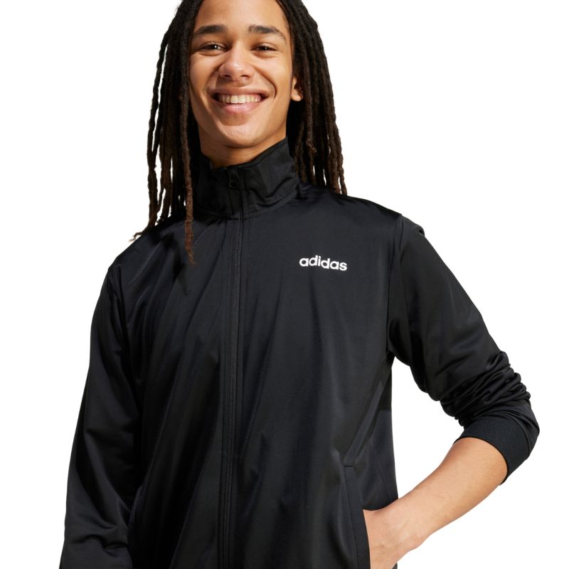 Dres męski adidas Linear czarny JN1808 Dres sportowy adidas przeznaczony jest dla mężczyzn. Sprawdzi się podczas aktywności lub odpoczynku poza boiskiem. Rozpinana bluza ze stawianym kołnierzem i otwartymi kieszeniami bocznymi. Jej dolną część i rękawy wyposażono w ściągacze. Spodnie dresowe posiadają elastyczną talią regulowaną sznurkiem oraz kieszenie. Dres uszyto z szybkoschnącego poliestru pochodzącego z recyklingu. Subtelne logo. Materiał: 100% poliester pochodzący z recyklingu