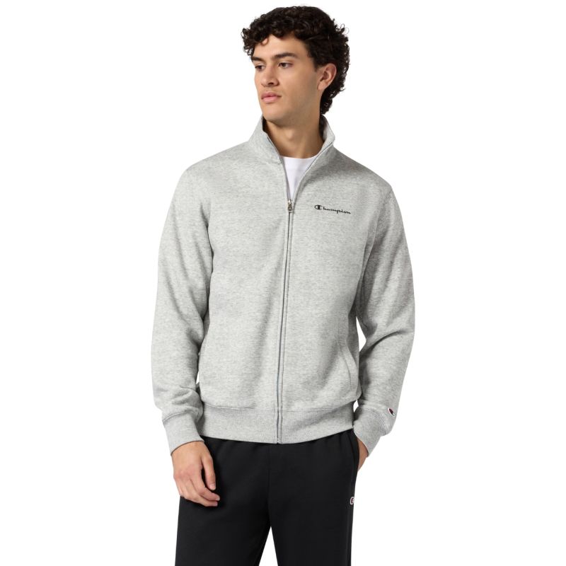 Dres męski Champion Sweatsuit czarno-szary 221786 EM021 Dres dla mężczyzn adidas sprawdzi się podczas codziennego użytkowania. W komplecie bluza i spodnie dresowe. Bluza ze stójką ma zamek na całej długości. Jej dolną część i rękawy wyposażono w ściągacze. Spodnie dresowe z elastyczną talią i wsuwanymi kieszeniami wykończono nogawkami bez ściągaczy. Bluza i spodnie posiadają kieszenie. Materiał główny: 55% bawełna, 45% poliester