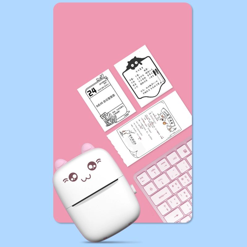 Drukarka termiczna HURC9 Bluetooth kotek mini z aplikacją - różowa