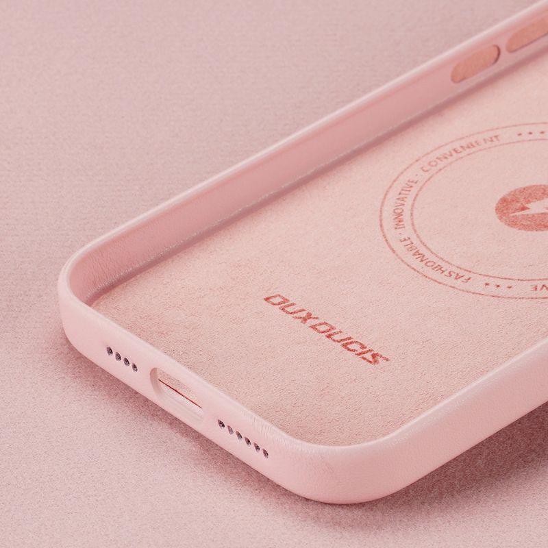 Dux Ducis Grit skórzane etui do iPhone 14 Plus elegancki pokrowiec ze sztucznej skóry (kompatybilne z MagSafe) różowy