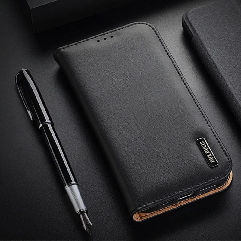 Dux Ducis Hivo skórzane etui z klapką pokrowiec ze skóry naturalnej portfel na karty i dokumenty iPhone 14 Pro brązowy