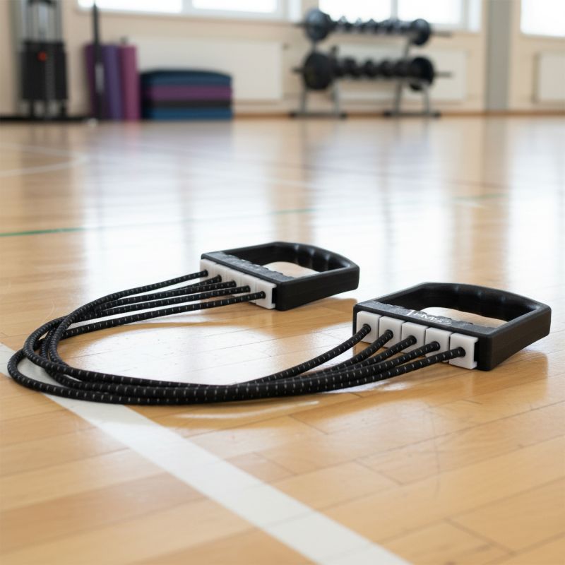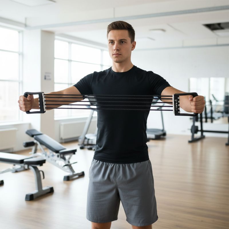 - Naciągi ekspandera powstały z specjalnej gumy. Materiał posiada zwiększoną wytrzymałość na rozciąganie. Siłę oporu reguluje się poprzez założenie odpowiedniej ilości lin.