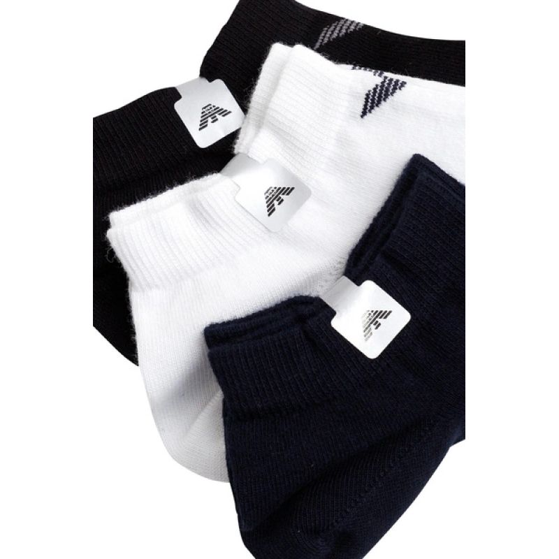 Emporio Armani skarpety stopki Calza bawełna wygodne 3-Pack granatowe czarne białe