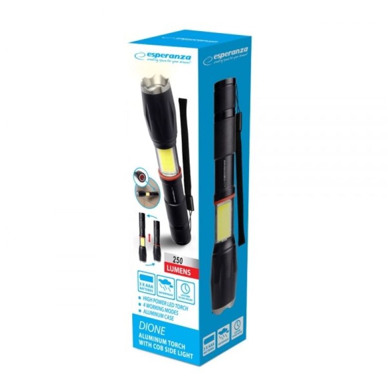 21. ESPERANZA ALUMINIOWA LATARKA ZE ŚWIATŁEM BOCZNYM COB DIONE EOT070