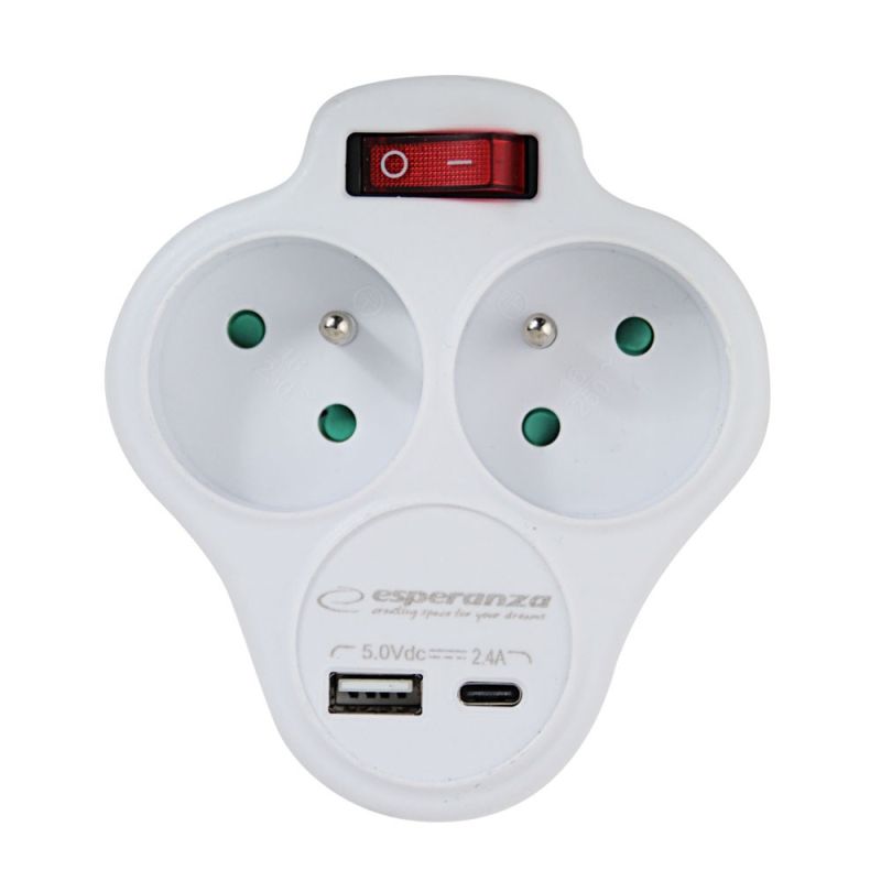 ESPERANZA ROZGAŁĘŹNIK ELEKTRYCZNY 2 GN. USB-C USB-A WŁ. BIAŁY ELK311W