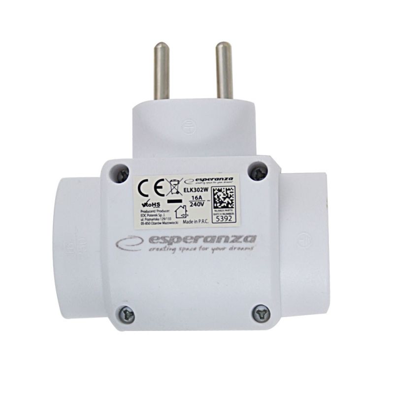 ESPERANZA ROZGAŁĘŹNIK ELEKTRYCZNY 3 GNIAZDA BIAŁY ELK302W