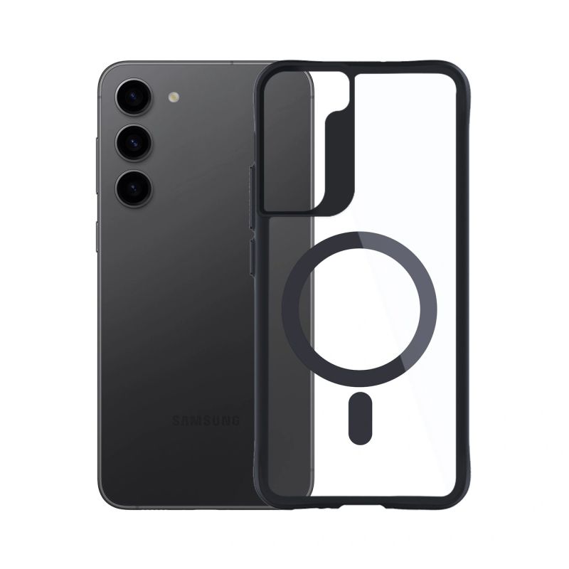Etui 3mk Satin Armor MagCase z MagSafe na Samsung Galaxy S23+ - przezroczyste z czarną ramką