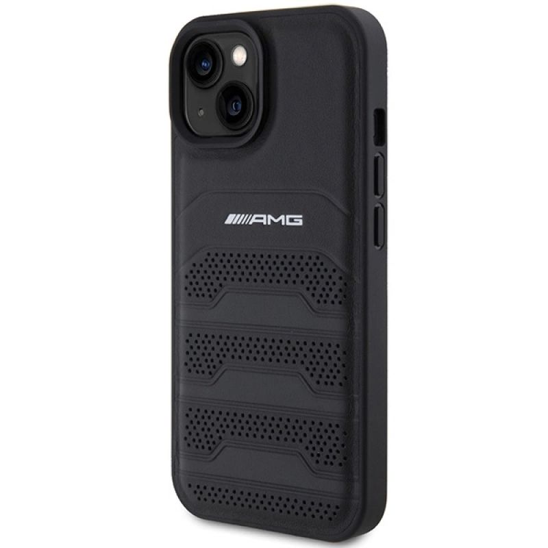 Etui AMG Leather Debossed Lines do iPhone 15 Plus - czarne