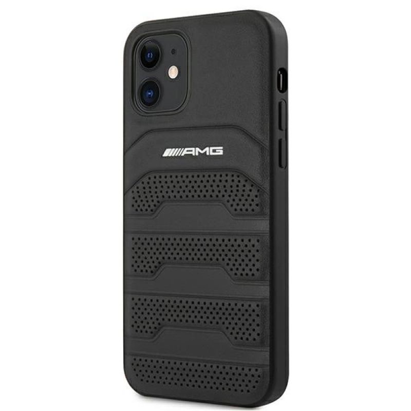 Etui AMG Leather Debossed Lines na iPhone 12 mini - czarne