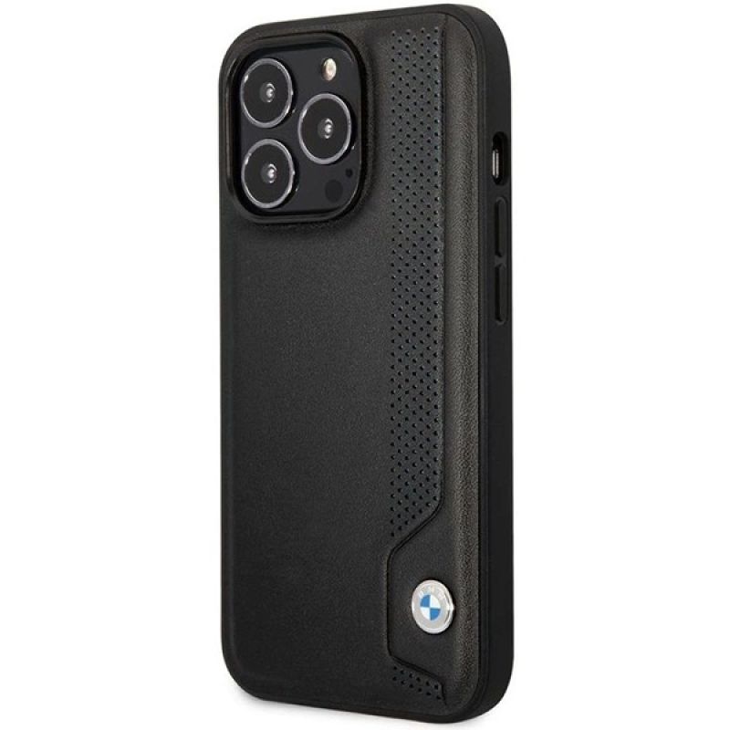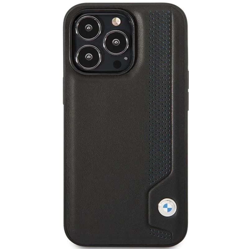 Etui BMW Leather Blue Dots na iPhone 14 Pro Max - czarne