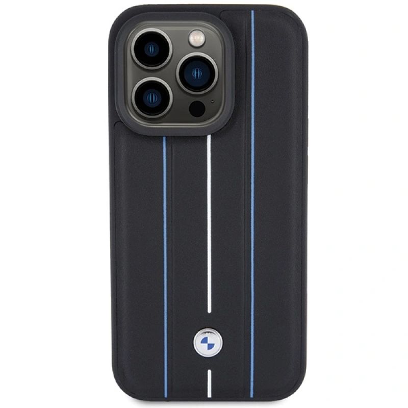 Etui BMW Leather Stamp Blue Line na iPhone 15 Pro Max - czarne