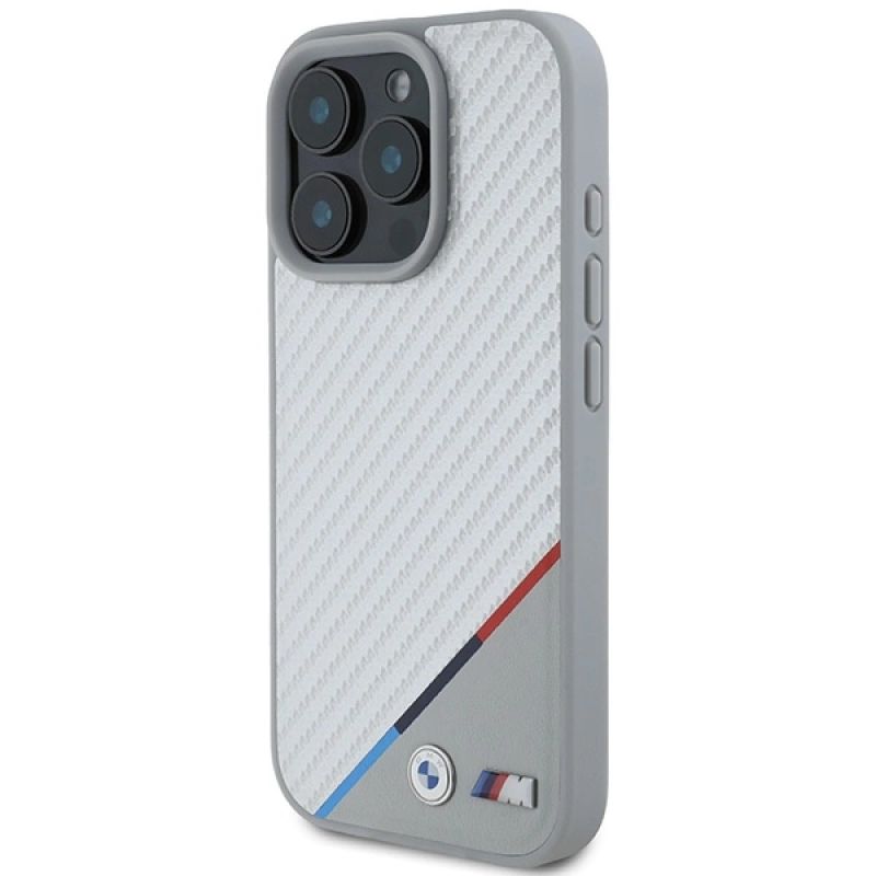 Etui BMW M Carbon Tricolor Line MagSafe na iPhone 16 Pro - szare