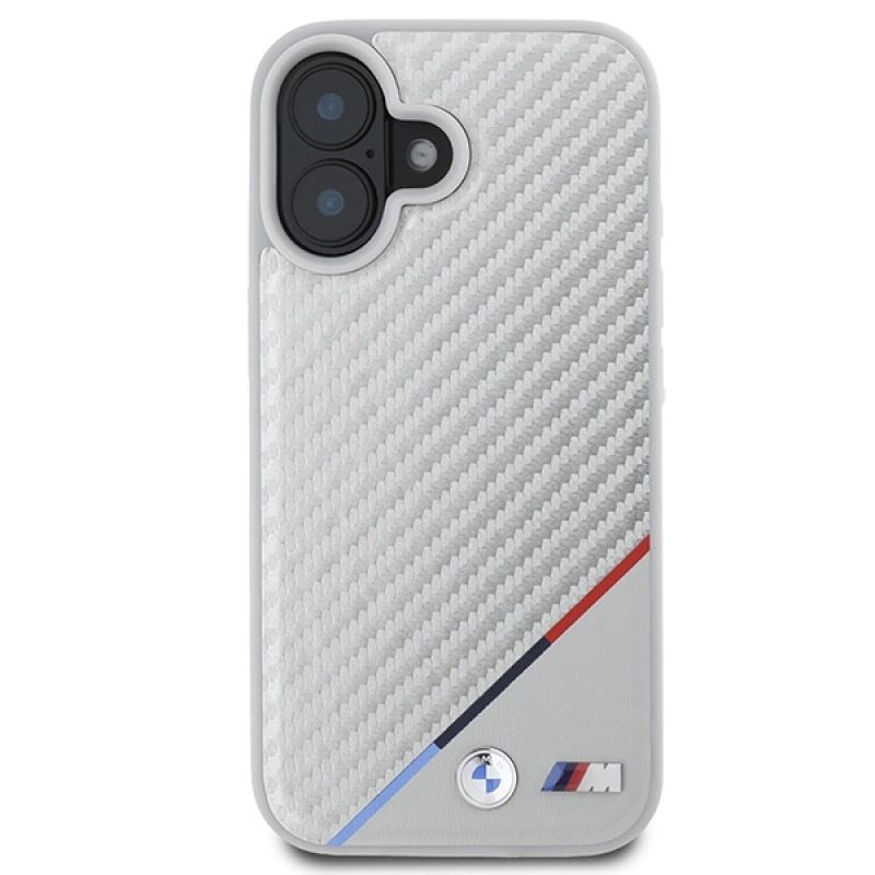 Etui BMW M Carbon Tricolor Line MagSafe na iPhone 16 - szare