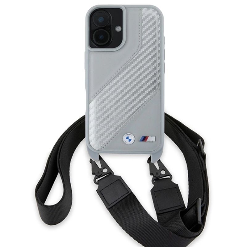 Etui BMW M Edition Carbon Stripe & Strap na iPhone 16 - szare