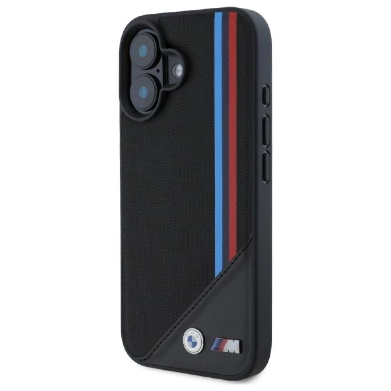 Etui BMW M Meshed Tricolor Stripes MagSafe na iPhone 16 - czarne