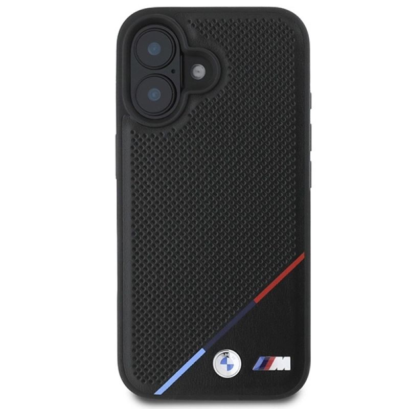 Etui BMW M Perforated Tricolor Line MagSafe na iPhone 16 Plus - czarne