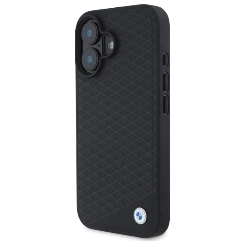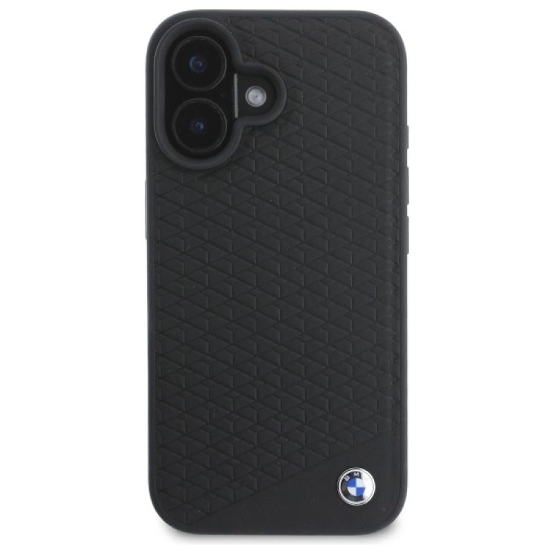 Etui BMW Sign Leather Diamond Metal Logo MagSafe na iPhone 16 - czarne