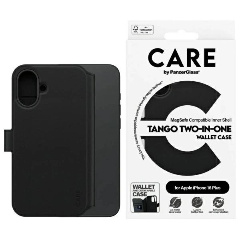 Etui CARE by PanzerGlass Feature Tango 2in1 Wallet MagSafe na iPhone 16 Plus - czarne