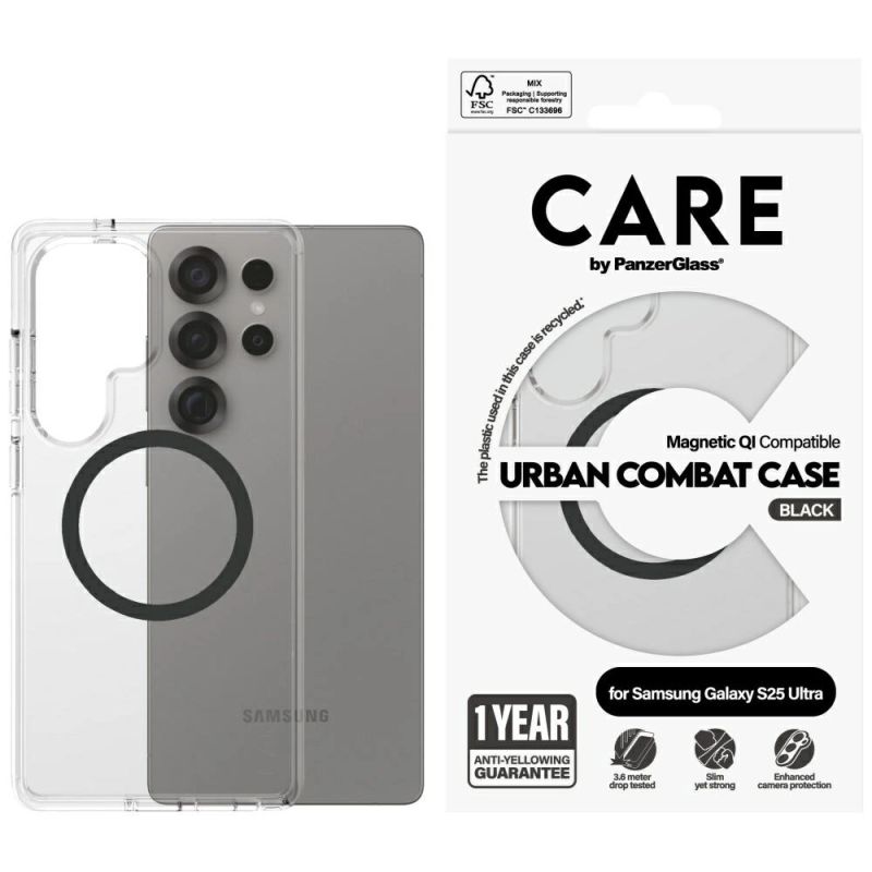 Etui CARE by PanzerGlass Flagship Urban Combat Black QI do Samsung Galaxy S25 Ultra - przezroczysty