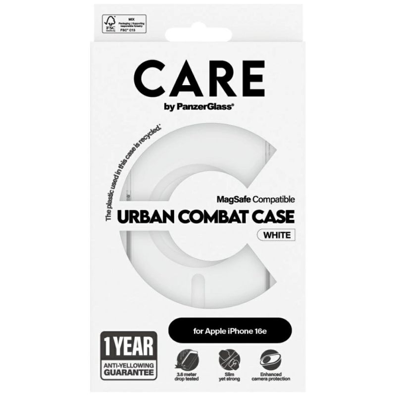 Etui CARE by PanzerGlass Flagship Urban Combat White MagSafe na iPhone 16e - przezroczyste