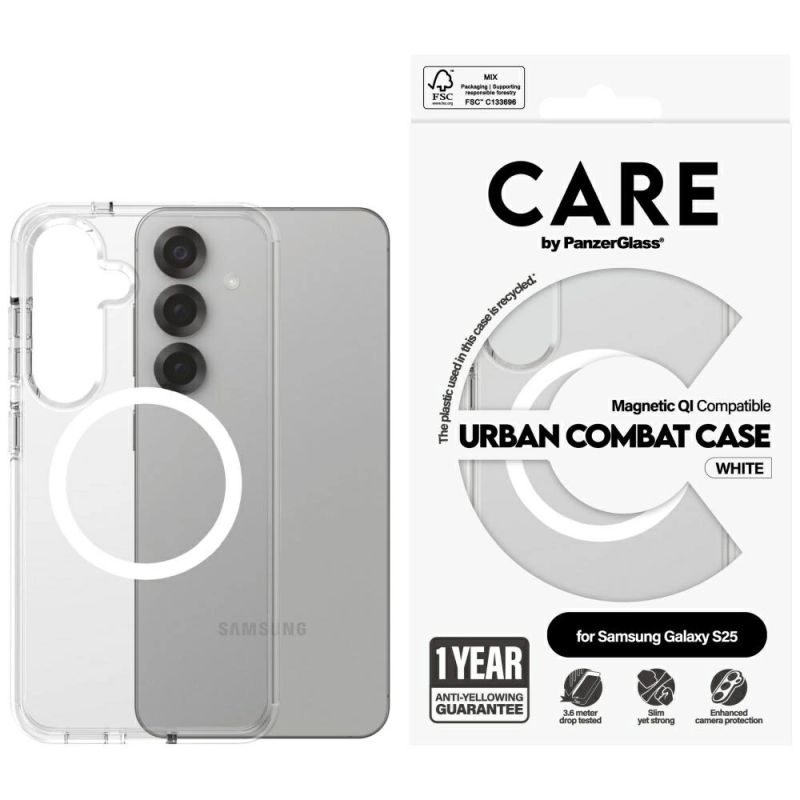 Etui CARE by PanzerGlass Flagship Urban Combat White QI do Samsung Galaxy S25 - przezroczysty