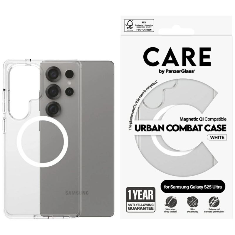 Etui CARE by PanzerGlass Flagship Urban Combat White QI do Samsung Galaxy S25 Ultra - przezroczysty